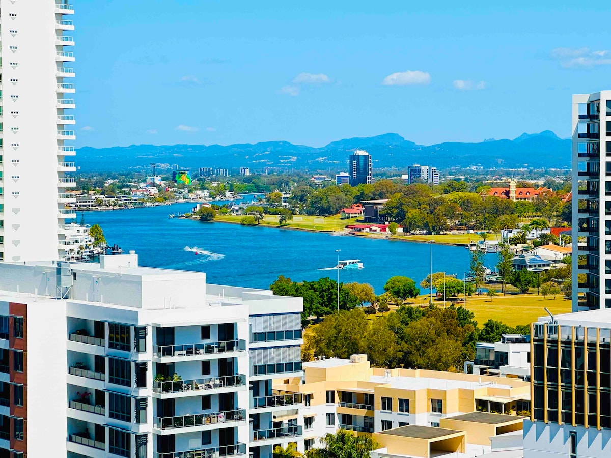 Καλώς ήρθατε στο στούντιο μας στο ισόγειο με 1 υπνοδωμάτιο, με ένα διπλό κρεβάτι, πλήρη κουζίνα και Wi-Fi. Οι λάτρεις των κατοικίδιων ζώων χαίρονται - είμαστε φιλικοί προς τα σκυλιά (ισχύουν οι κανόνες σπιτιού)! Χαλαρώστε στην ιδιωτική σας εξωτερική βεράντα ή επωφεληθείτε από τις παροχές του θέρετρου, όπως πισίνες, σπα, γυμναστήριο - όλα με θέα στον ποταμό. Διατίθεται πάρκινγκ επί πληρωμή με τιμές που παρέχονται στα στοιχεία της κράτησής σας. Με το τραμ, το Cavil Av και την παραλία μόλις 10 λεπτά μακριά, είστε σε θέση να ζήσετε το Surfers Paradise!
