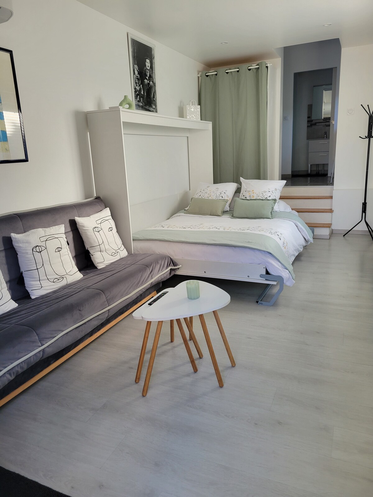 Ανεξάρτητο στούντιο πλήρως ανακαινισμένο. Κομψό και μοντέρνο, τα 28 τ.μ. του είναι πλήρως εξοπλισμένα: μικρό σαλόνι με τηλεόραση, πτυσσόμενο κρεβάτι για 2 άτομα, εξοπλισμένη κουζίνα με πάγκο και μπάνιο με τουαλέτα Ήσυχη γειτονιά, κοντά στον σιδηροδρομικό σταθμό και το κέντρο της πόλης Νεβέρ και τα κέντρα κατάρτισης Για το καλοκαίρι, μπορείτε να απολαύσετε μια ιδιωτική και δενδρόφυτη βεράντα Αυτή είναι η δεύτερη κατοικία μου σε αυτή τη διεύθυνση, η διαφήμιση αυτής "μικρή ζεστή φωλιά" Με ευχαρίστηση