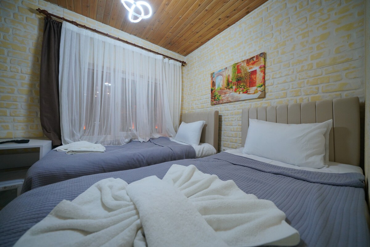 103- Δωμάτιο με δύο μονά κρεβάτια σε κεντρική πέτρινη σπηλιά με την καλύτερη τοπική ατμόσφαιρα
