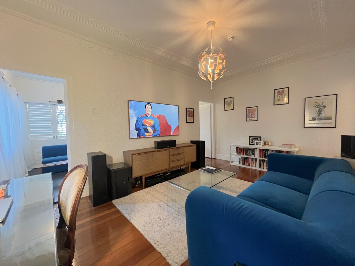 Μείνετε σε ένα διαμέρισμα Art Deco της δεκαετίας του 1940 με προσωπικότητα στην καλύτερη οδό του New Farm. Αυτό το καταφύγιο με 2 κρεβάτια και 1 μπάνιο είναι ένα επιμελημένο καταφύγιο για δημιουργικούς και ονειροπόλους, με ψηλά ταβάνια, περίτεχνα γύψινα, ξύλινα δάπεδα και μπαλκόνια με φυλλώματα. Ξυπνήστε σε ευάερους χώρους γεμάτους τέχνη, πιείτε καφέ ανάμεσα σε τολμηρό ντιζάιν και, στη συνέχεια, περιηγηθείτε σε καφετέριες, στο Riverwalk, στο Howard Smith Wharves ή στο Powerhouse. Τη νύχτα, επιστρέψτε στο μπουτίκ καταφύγιό σας, όπου η vintage γοητεία συναντά τη σύγχρονη άνεση.