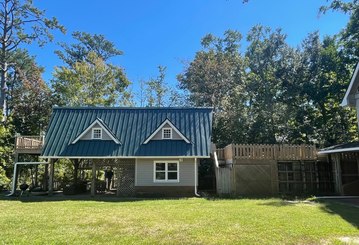 Χιλιόμετρα εκπληκτικής θέας στο νερό που κοιτάζει προς το Swansboro από αυτό το παραποτάμιο εξοχικό σπίτι που έχει ανακαινιστεί πρόσφατα μέσα και έξω. Ένας χωματόδρομος σας βγάζει από την πεπατημένη και ένα ιδιωτικό σκηνικό στο τέλος ενός χωματόδρομου με μόνο λίγα άλλα εξοχικά ψαρέματος. Θα λατρέψετε την ηρεμία, την ησυχία και το αναζωογονητικό αεράκι. Απολαύστε ανατολές/ηλιοβασιλέματα από την προβλήτα! Πρόσβαση σε καγιάκ, κανό και 2 σανίδες κωπηλασίας. Απολαύστε τα ψαροπούλια να βουτούν για ψάρια, ένα περιστασιακό δελφίνι και άλλα πτηνά.