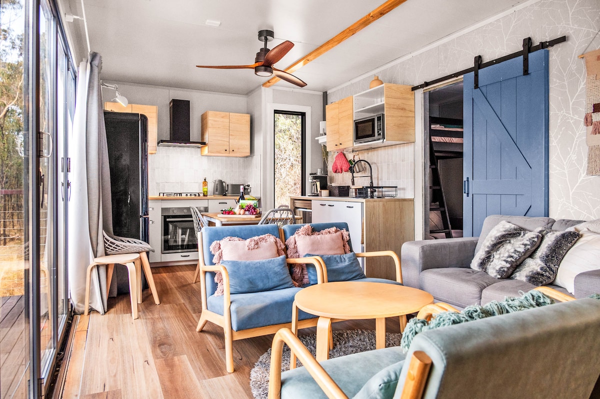 Πολυτελές οικολογικό μικροσκοπικό σπίτι στην καρδιά της κοιλάδας Hunter. Αυτό το αρχιτεκτονικά σχεδιασμένο οικολογικό μικροσκοπικό σπίτι διαθέτει όλα όσα χρειάζεστε για ένα διάλειμμα που σας αξίζει: ιδιωτικότητα, εκπληκτική θέα στον ποταμό Hunter, σοφίτα με κρεβάτι queen Tempur Cloud και κλινοσκεπάσματα υψηλής ποιότητας, φεγγίτη για να ατενίζετε τα αστέρια, κλιματισμό, πλήρως εξοπλισμένη κουζίνα, μπάνιο με φιλική προς το περιβάλλον τουαλέτα, καθιστικό με χώρο εργασίας, μίνι βιβλιοθήκη, παιχνίδια, βεράντα, υπαίθριο μπάνιο, φωτάκια, μπάρμπεκιου και τζάκι.