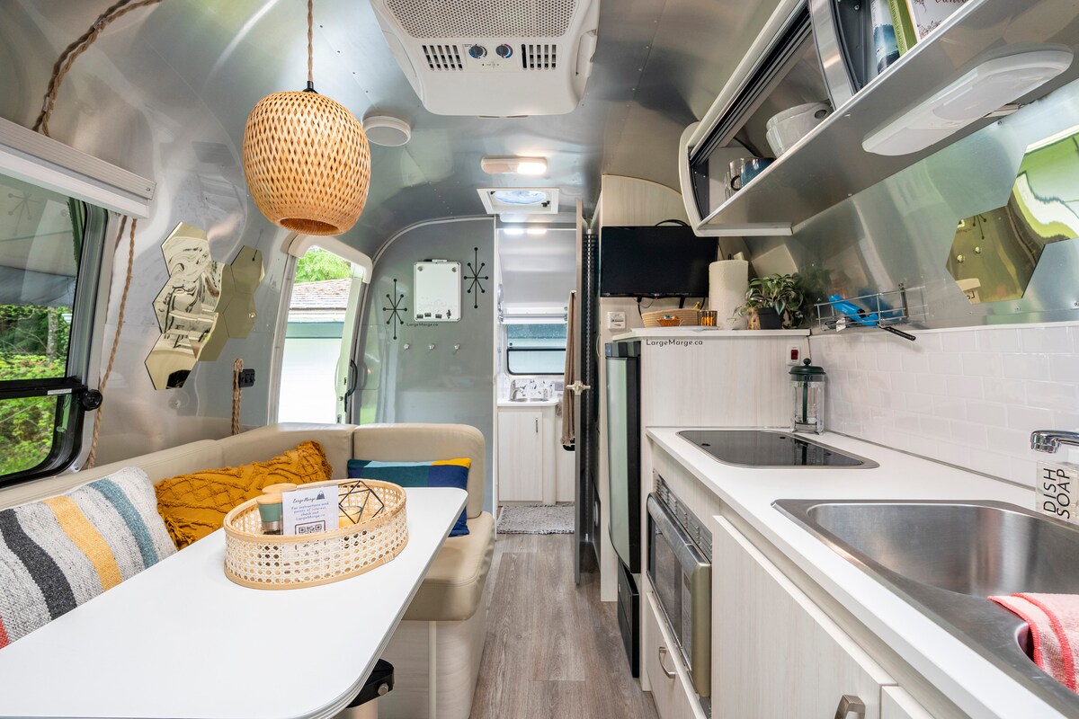 2018 airstream for two in a quiet, peaceful location. Access to the Capilano River via stairs into the canyon. Lots of comfortable amenities in the trailer including allergy-free bedding, a TV with DVD or your choice of streaming, and a cosy outdoor patio to enjoy a Nespresso with a view. Your stay here will be a memorable one!