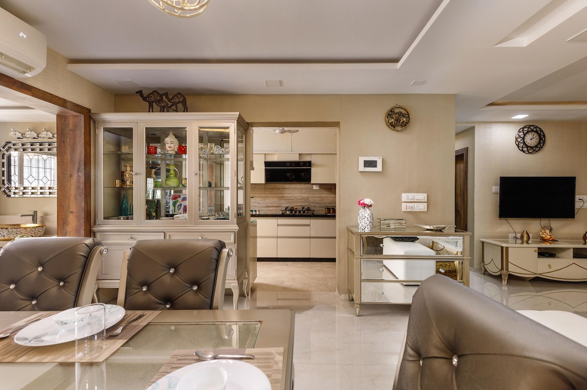 Πρόκειται για ένα πολυτελές και ευρύχωρο ρετιρέ που βρίσκεται στο κέντρο της Μπανγκαλόρ και έχει 3 επίπεδα με άφθονο ιδιωτικό εξωτερικό χώρο. Το πράσινο και το φυσικό φως που προέρχεται από τον φεγγίτη και τα τεράστια γυάλινα παράθυρα είναι τα σημαντικότερα σημεία. Το σπίτι είναι πλήρως εξοπλισμένο με όλες τις σύγχρονες ανέσεις που απαιτούνται για μια εξαιρετική διαμονή. Καθημερινή καθαριότητα, ρεύμα 24 ώρες το 24ωρο, ασανσέρ, πάρκινγκ, μοντέρνα κουζίνα, μπαρ, χώρος γραφείου για εργασία, ίντερνετ υψηλής ταχύτητας, τηλεοράσεις 65 ιντσών, ηχοσύστημα JBL 5.1 είναι μερικές από τις βασικές παροχές.