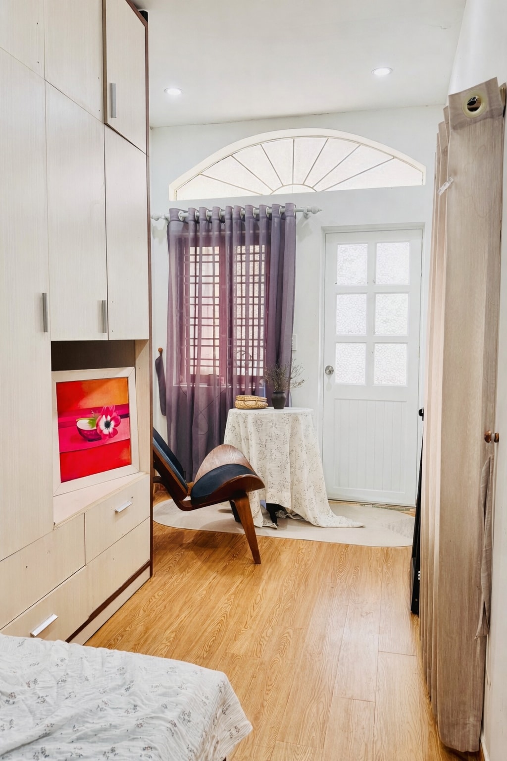 Βρίσκεται σε μια ζωντανή γειτονιά στην καρδιά της πόλης (5 λεπτά με τα πόδια από την Όπερα και τον σιδηροδρομικό σταθμό Hai Phong). Το δωμάτιο βρίσκεται στον 4ο όροφο, 22 τ.μ. είναι κομψά σχεδιασμένο, άνετο, χαλαρωτικό με πολύ ωραία μεγάλα παράθυρα, ευρύχωρα ντουλάπια αποθήκευσης. Παρέχουμε κλιματιστικό ψύξης, 3 άνετα μονά κρεβάτια με μαξιλάρια και παροχές στο μπάνιο. Σκάλες στο όμορφα σχεδιασμένο δωμάτιο.