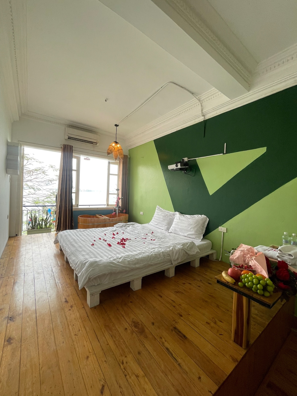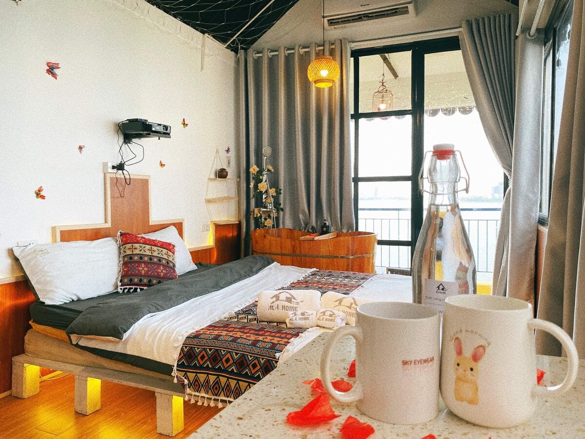 Chào mừng bạn đến với nhà của mình tại Hồ Tây, Hà Nội! Nằm ngay bên bờ hồ Tây, căn hộ sở hữu một ban công rộng rãi hưởng trọn view hồ, lý tưởng cho những buổi sáng thư giãn hoặc buổi tối lãng mạn. Không chỉ có không gian thoáng đãng, căn hộ còn được trang bị máy chiếu hiện đại, mang đến trải nghiệm điện ảnh ngay tại nhà. Với đầy đủ tiện nghi bếp giặt sấy hiện đại, căn hộ này thực sự là lựa chọn hoàn hảo cho những chuyến staycation thư giãn. Hãy book ngay với nhà mình nhé!