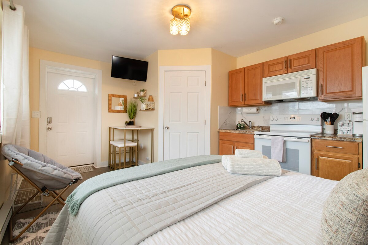 Ιδανική απόδραση από την πόλη για ζευγάρια που θέλουν γαλήνη και ηρεμία και εκπληκτική θέα. Ένας όμορφος ξενώνας ενός υπνοδωματίου στην προκυμαία, ενάμιση μίλι από το κέντρο του Μίστικ του Κονέκτικατ. Όμορφα διακοσμημένο με έργα τέχνης και αντίκες. Μικρή κουζίνα, πλήρες μπάνιο και υπνοδωμάτιο σοφίτα. Κρεβάτι queen size. Κλιματισμός και θέρμανση. Βελγικά λινά κλινοσκεπάσματα! Ιδιωτικό αίθριο. Αποβάθρα. Ενοικίαση καγιάκ/κανό κοντά. Ίντερνετ.