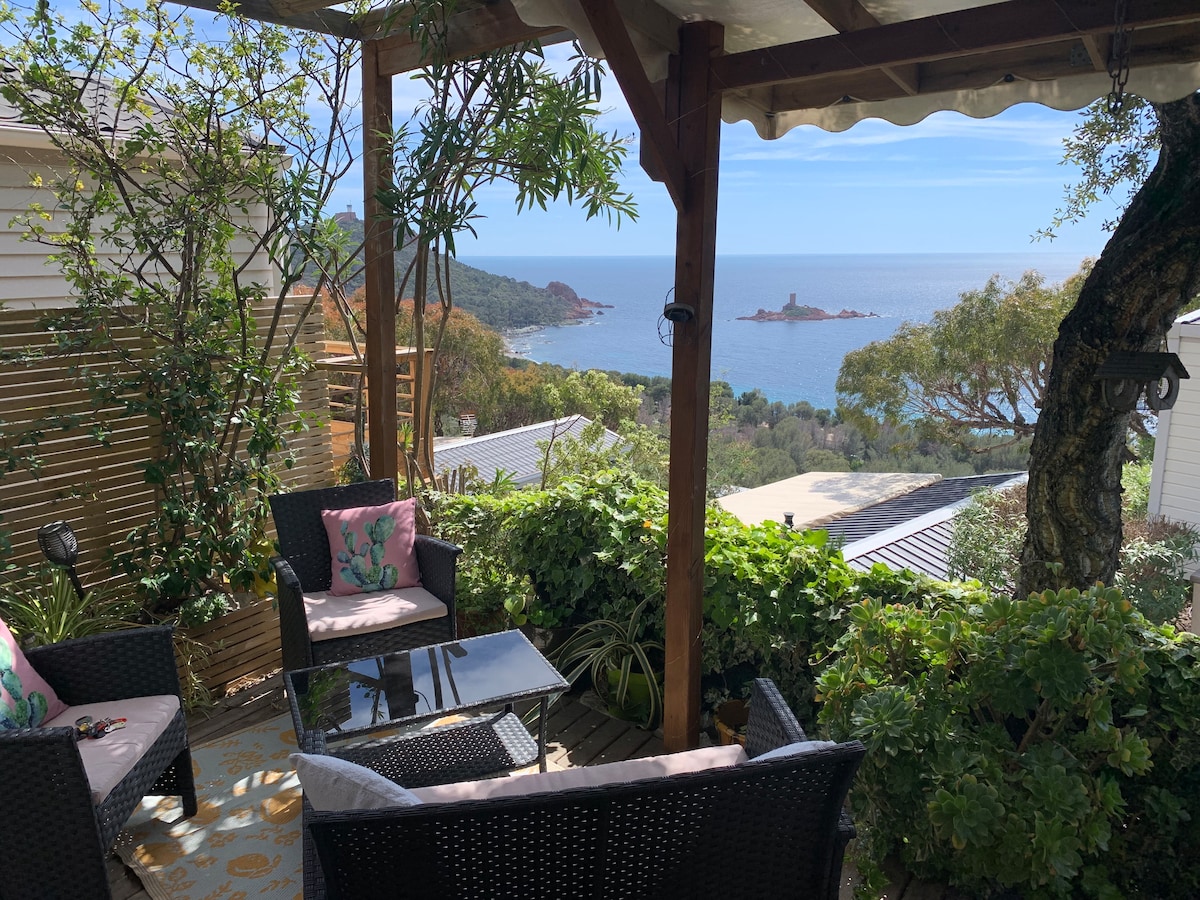 Ένα μπαλκόνι με θέα στη θάλασσα στους κόκκινους βράχους του Εστέρελ, στον γνωστό δρόμο της χρυσής κορνίζας, μεταξύ του Αγίου Ραφαήλ και των Καννών Δύο όμορφες βεράντες με θέα στη θάλασσα, μέσα σε μια πλούσια βλάστηση, με θέα στα νησιά Λερέν και Κάννες, τα πρωινά μέσα στα πουλιά είναι πολύ ευχάριστα Είναι ο μικρός μας παράδεισος σε ένα εξαιρετικό περιβάλλον