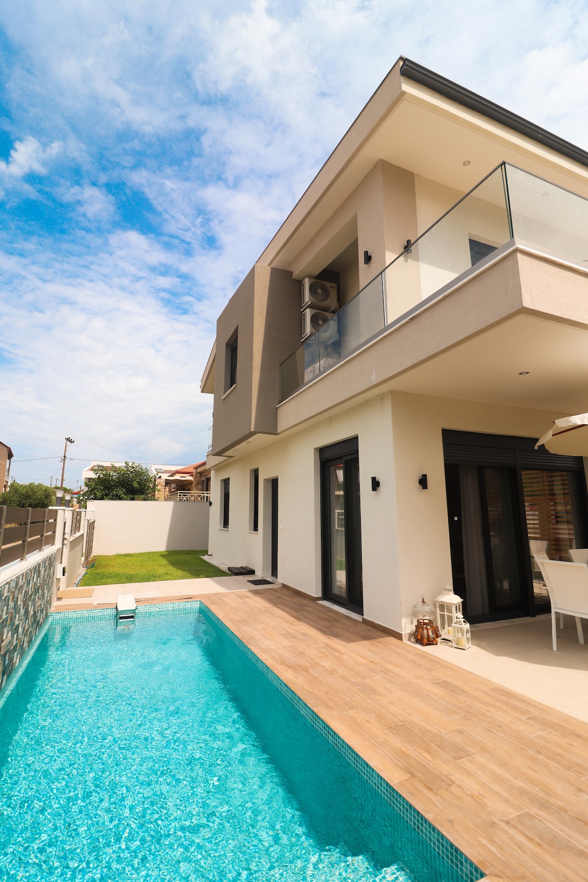 4-bedroom villa with private pool (5.60x2.30m, max depth 1.60m) and big garden suitable for kids. 400m from Nikiti beach 600m from Nikiti's beachfront where you can find bars, restaurants and cafes 650m from the Supermarket The house has 2 floors. The kitchen along with the living room, a bedroom and a bathroom can be found on the ground floor. The kitchen is fully equipped with everything you need for everyday meals and drinks. On the second floor, there are 3 bedrooms and a bathroom.