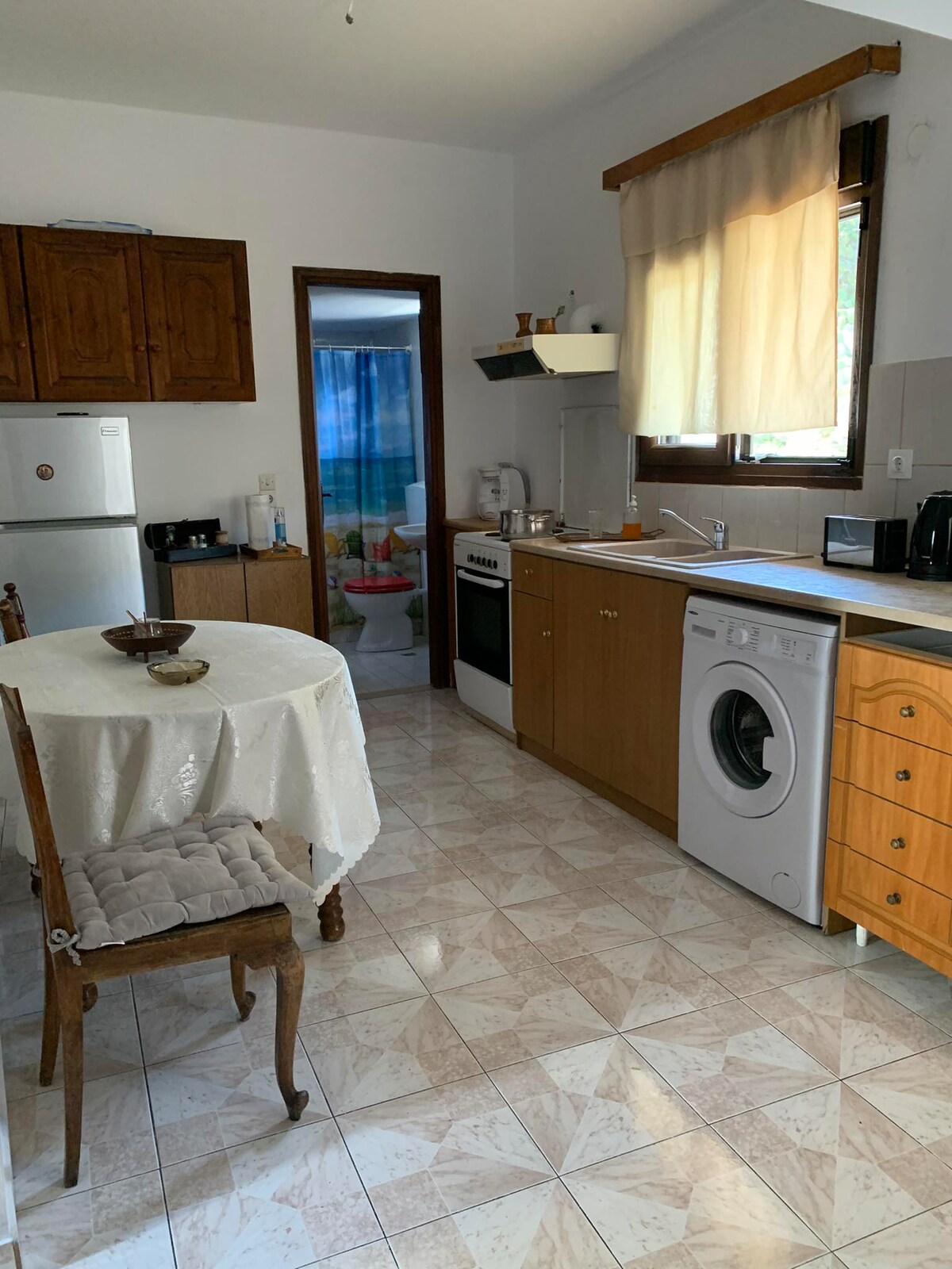 Relax in this peacefull place.In the same property with 2 more airbnb little houses,that one has an ouτdoors kitchen and living room-dining room and access to a confy kiosk with electricity ,where you can work with your laptop or dine or just relax.The sea is 30m away,for a quick jump whatever moment of the day or night you feel like.Mandraki, the biggest village of the island,where minimarkets,restaurants,bars are,is at 1 km,15 min stroll by foot,just next to the port.