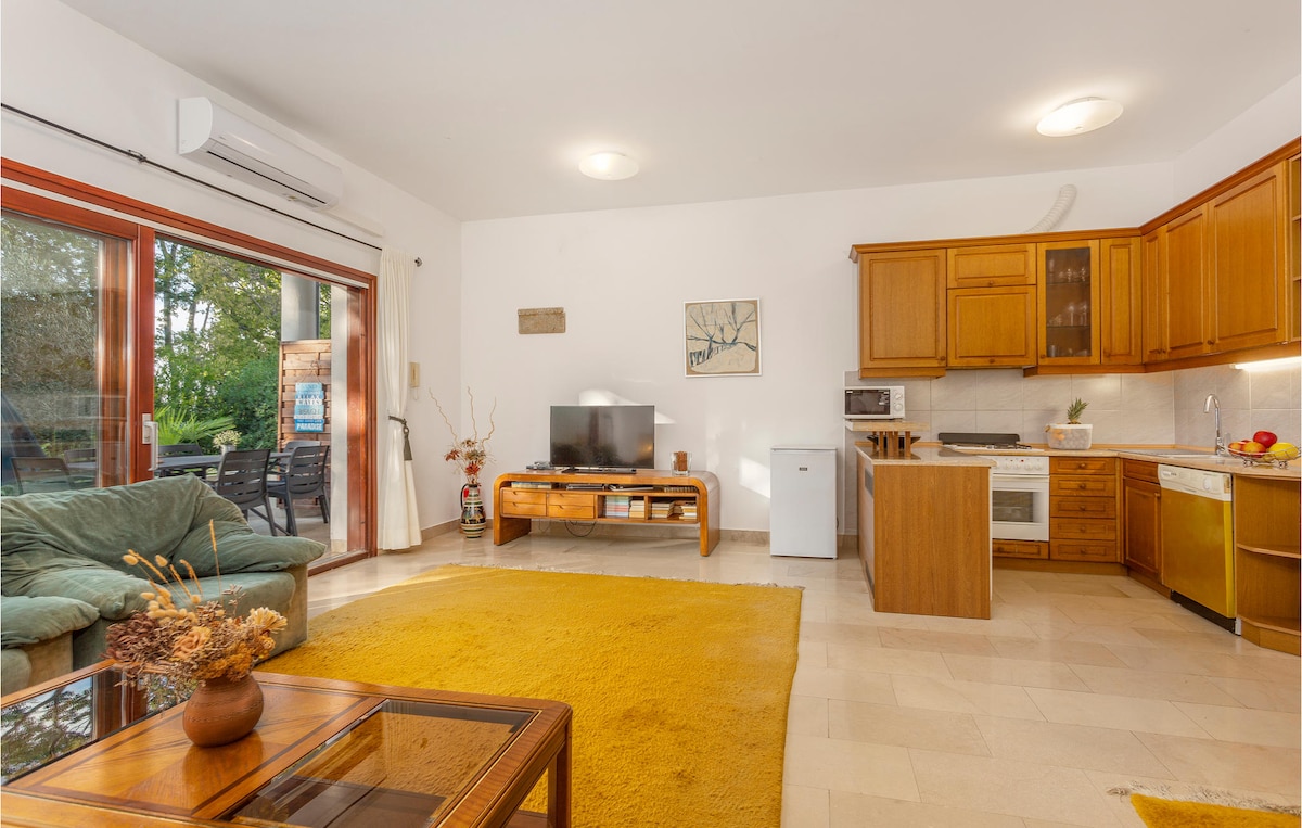 Όμορφο διαμέρισμα στο Njivice στο νησί Krk για 4 άτομα, μόλις 500 μ. από τη θάλασσα. Το διαμέρισμα διαθέτει ένα υπνοδωμάτιο, ένα μπάνιο, κουζίνα και σαλόνι. Στο σαλόνι υπάρχει ένα πτυσσόμενο κρεβάτι για δύο άτομα. Οι επισκέπτες έχουν στη διάθεσή τους ιδιωτική αυλή με θερμαινόμενη πισίνα, εξωτερική βεράντα, μπάρμπεκιου, τραμπολίνο και κούνια για παιδιά. Μία θέση στάθμευσης είναι ασφαλισμένη. Επιτρέπονται τα κατοικίδια!
