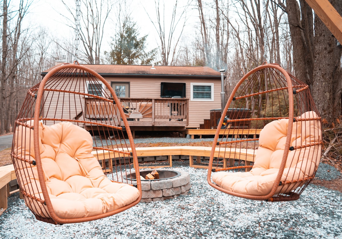 Αποδράστε στην απομονωμένη καμπίνα μας στα βουνά Ποκόνο, ιδανική για μια ρομαντική απόδραση ή μια αξέχαστη οικογενειακή απόδραση. Απολαύστε τον πρωινό καφέ στην ευρύχωρη βεράντα, ταΐστε ελάφια από τη βεράντα ή ενώ χαλαρώνετε στο ιδιωτικό τζακούζι κάτω από τα αστέρια ή περάστε ηλιόλουστες μέρες στην κοινόχρηστη εξωτερική πισίνα. Μέσα, χαλαρώστε δίπλα στο τζάκι ή απολαύστε ποιοτικό χρόνο παίζοντας μπιλιάρδο μαζί. Κοντά σε πεζοπορία, λίμνες, σκι και τοπικά αξιοθέατα, αυτή η ήσυχη καμπίνα προσφέρει άνεση, ιδιωτικότητα και ορεινή γοητεία καθ' όλη τη διάρκεια του έτους!!!