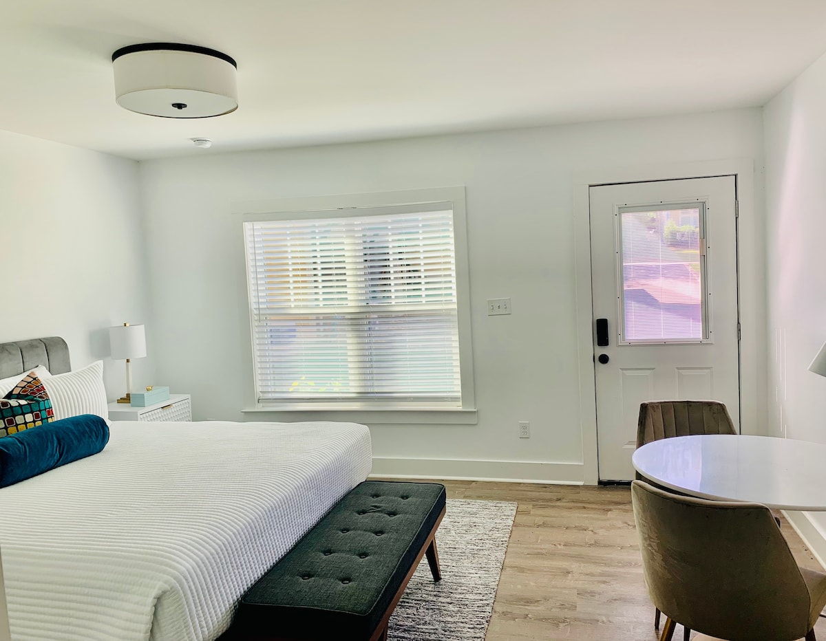 Αποδράστε στο άνετο καταφύγιό μας στη ζωντανή καλλιτεχνική συνοικία NoDa της Σάρλοτ! Αυτό το ιδιωτικό καταφύγιο είναι ιδανικό για μοναχικούς ταξιδιώτες ή ζευγάρια. Απολαύστε έναν μοναδικό ρουστίκ-μοντέρνο σχεδιασμό, έναν ειδικό χώρο εργασίας με Wi-Fi και μια καλά εξοπλισμένη μικρή κουζίνα. Περπατήστε μέχρι τοπικές καφετέριες, εστιατόρια και μουσικούς χώρους. Περιλαμβάνει αποκλειστική θέση στάθμευσης. Ένα γαλήνιο καταφύγιο για την περιπέτειά σας στο Σάρλοτ!