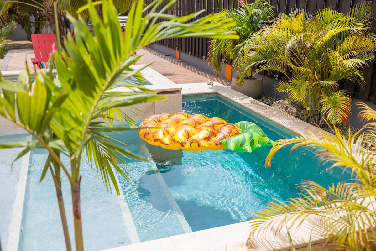 Γοητευτικό καταφύγιο 3 υπνοδωματίων με ιδιωτική πισίνα – 5-7 λεπτά με τα πόδια από την παραλία! Καλώς ήρθατε στην τέλεια απόδρασή σας στην Αρούμπα! Αυτό το όμορφο εξοχικό σπίτι με 3 υπνοδωμάτια και 2 μπάνια διαθέτει ιδιωτική, φωτιζόμενη πισίνα και όμορφο κήπο στην πίσω αυλή. Απέχει 5-7 λεπτά με τα πόδια από το παγκοσμίου φήμης Palm Beach, γνωστό για τα κρυστάλλινα γαλαζοπράσινα νερά του και την απαλή λευκή κοραλλιογενή άμμο. Εστιατόρια, εμπορικά κέντρα, παραλίες και καζίνο βρίσκονται σε κοντινή απόσταση. Είναι ιδανικό για οικογένειες ή ομάδες που θέλουν να χαλαρώσουν με άνεση και στυλ.