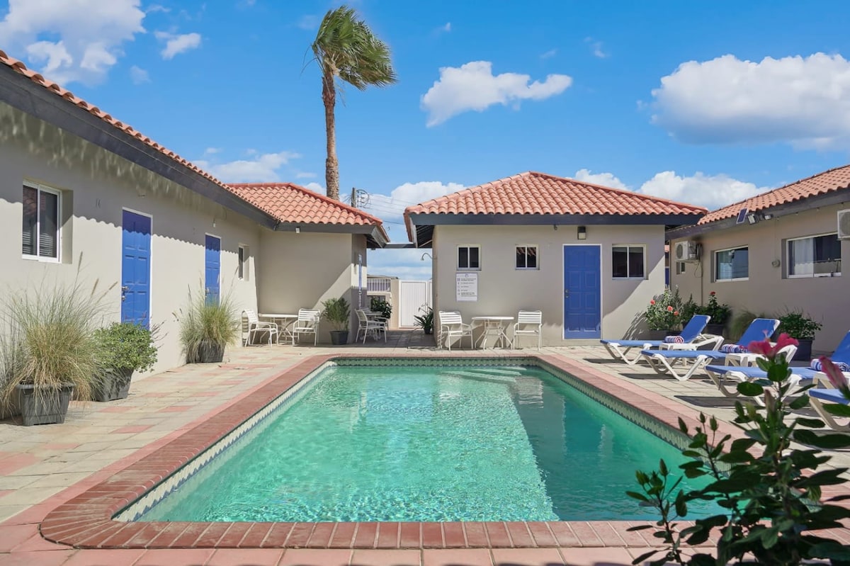 Ανεξάρτητο διαμέρισμα, με ένα υπνοδωμάτιο, πλήρως ιδιωτικός δεύτερος όροφος, πλήρως επιπλωμένο και με δωρεάν πάρκινγκ. Απέχει μόλις 7 λεπτά από μία από τις καλύτερες παραλίες της Αρούμπας, με μπαρ-εστιατόριο και παιδική χαρά (SURFSIDE BEACH, γνωστή και ως NICKI BEACH) Ήσυχη και φωτεινή περιοχή, δεν υπάρχει πολλή κίνηση, είναι 5 λεπτά από το αεροδρόμιο, υπάρχει μίνι μάρκετ και σούπερ μάρκετ κοντά. Είναι επίσης κοντά σε ένα ενοικιαζόμενο αυτοκίνητο και σε διάφορα εστιατόρια