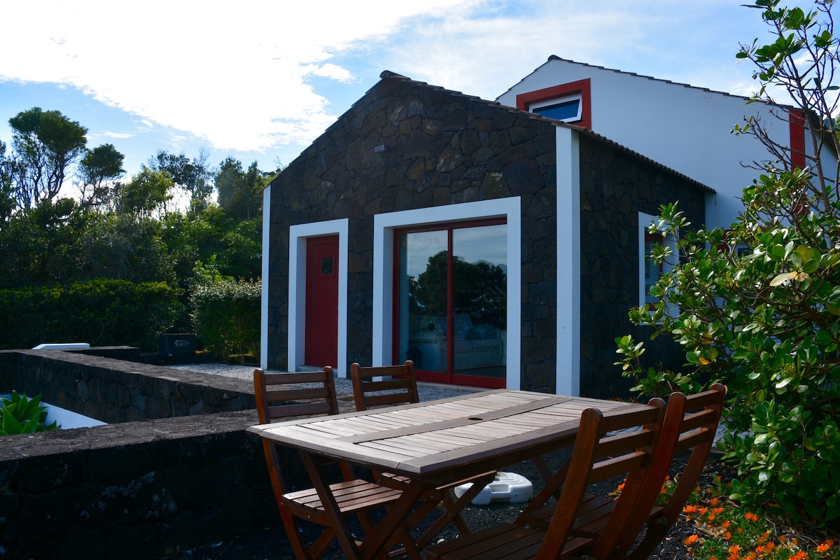 Χαλαρώστε σε αυτό το εξοχικό σπίτι σε ένα μοναδικό και ήσυχο σημείο. Απολαύστε στην πισίνα, το τζακούζι ή τη σάουνα τη φανταστική θέα στο Faial, τη θάλασσα και το χωριό Madalena. Απολαύστε ένα όμορφο ξύλινο σπίτι σε ένα μοναδικό και ξεχωριστό μέρος με πισίνα, τζακούζι και σάουνα. Beneficie from pedestrian walks viewing the wonderful mountain of Pico. Τα καταλύματά μας βρίσκονται 2 λεπτά με το αυτοκίνητο και 20 λεπτά με τα πόδια από τη Vila da Madalena, περιλαμβάνουν ένα υπνοδωμάτιο με διπλό κρεβάτι και ένα σαλόνι με καναπέ-κρεβάτι.
