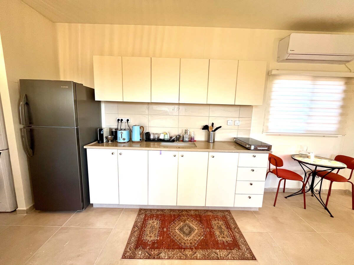 Ένα εκπληκτικό και εντελώς ξεχωριστό διαμέρισμα ενός υπνοδωματίου μόλις 3 λεπτά με τα πόδια από έναν από τους μαγικούς καταρράκτες του Nahal Dan. Το διαμέρισμα διαθέτει εξοπλισμένη κουζίνα με ψυγείο, φούρνο μικροκυμάτων, φούρνο, ηλεκτρικό βραστήρα, μηχανή εσπρέσο και πολλά άλλα Κλιματιστικό, τουαλέτα+ντους, είδη περιποίησης και πετσέτες. Μια τηλεόραση που περιλαμβάνει Ναι και Netflix και μια σειρά από άλλες πολυτέλειες. Το διαμέρισμα έχει αυλή με θέα στο Hermon και τα βουνά που περιβάλλουν την κοιλάδα. Το Kibbutz HaGoshrim βρίσκεται στην κοιλάδα Hula, πλούσια σε πράσινο και φύση, στο kibbutz περνά από ένα από τα πάρκα του Nahal Dan και έχει μια ποικιλία από εκπληκτικά μονοπάτια για να εξερευνήσετε. Επίσης, το κιμπούτς διαθέτει μίνι μάρκετ, παμπ, ιταλικό εστιατόριο, καθώς και γήπεδο γκολφ και πισίνα.