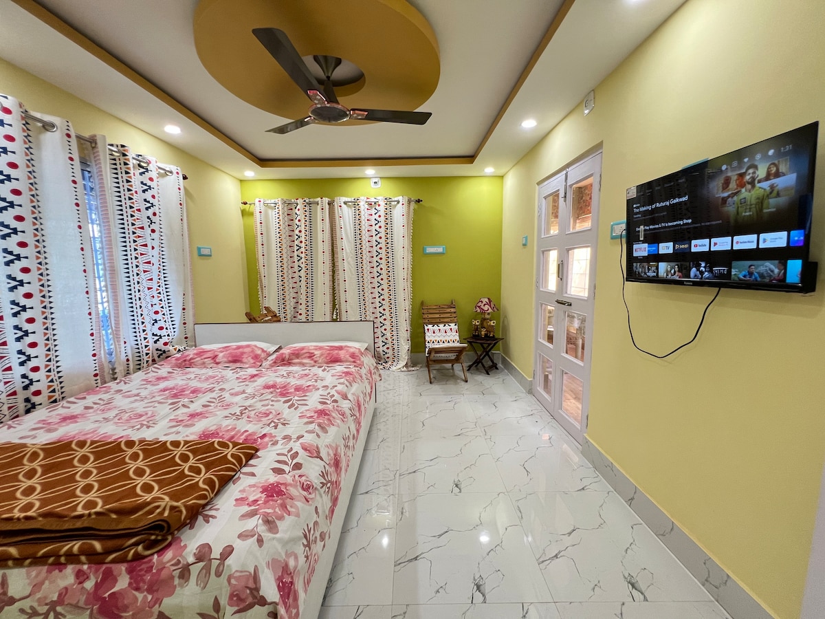 Καλώς ήρθατε στους επισκέπτες μου στο Shantiniketan. Ένα ήσυχο καταφύγιο κοντά στο αεροδρόμιο, που συνδυάζει τη σπιτική γοητεία με τις σύγχρονες ανέσεις. Αυτό το στούντιο σπίτι προσφέρει μια ήσυχη απόδραση κοντά στο αεροδρόμιο και για σύντομες στάσεις. Απολαύστε γρήγορο WiFi, τηλεόραση Android με OTT, κουζίνα, μια γοητευτική τραπεζαρία και ένα καταπράσινο μπαλκόνι ιδανικό για πρωινό τσάι ή χαλάρωση με ένα βιβλίο. Είτε είστε μοναχικός ταξιδιώτης, ζευγάρι ή μικρή οικογένεια, ο προσεκτικά σχεδιασμένος χώρος μας εξασφαλίζει μια χαλαρή και αξέχαστη διαμονή, προσθέτοντας την αγάπη και τη ζεστασιά μας.