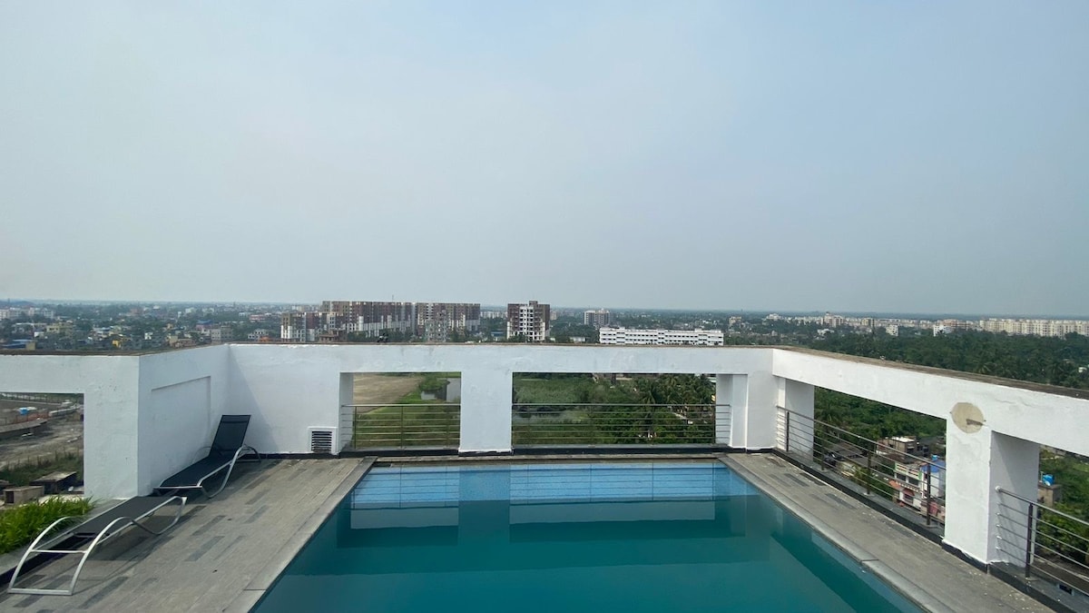 Απολαύστε την πολυτέλεια σε αυτό το κομψό στούντιο που βρίσκεται κοντά στο αεροδρόμιο και το εμπορικό κέντρο CC2. Ιδανικό για ζευγάρια, οικογένειες και φίλους που αναζητούν μια ξεχωριστή απόδραση. Με ίντερνετ υψηλής ταχύτητας άνω των 100 Mbps, αυτό το διαμέρισμα είναι επίσης ιδανικό για όσους εργάζονται από το σπίτι. Απολαύστε πρόσβαση στην πισίνα και το γυμναστήριο του ξενοδοχείου και μείνετε συνδεδεμένοι, καθώς η ιδιοκτησία βρίσκεται σε καλή τοποθεσία κοντά σε σημαντικά αξιοθέατα: 6 χλμ. από το Διεθνές Αεροδρόμιο της Καλκούτας, 1 χλμ. από το City Centre II και 2 χλμ. από το Eco Park.