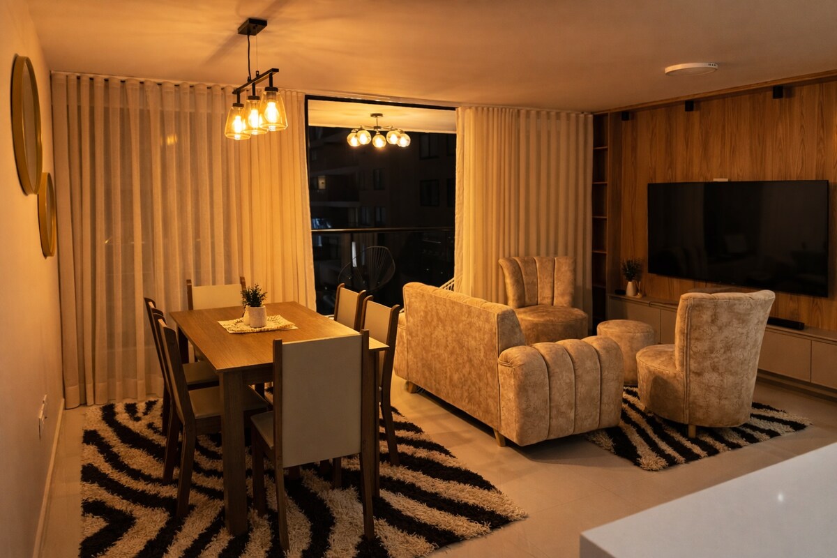 Καλώς ήρθατε στο άνετο καταφύγιό σας στην καταπράσινη πόλη της Κολομβίας 🌲 Αυτό το διαμέρισμα 2 υπνοδωματίων και 2 μπάνιων προσφέρει έναν φρέσκο και λειτουργικό χώρο, ιδανικό για τουρισμό, διαμονές μεγάλης διάρκειας ή επαγγελματικά ταξίδια στην Κούκουτα. Απολαύστε τον χώρο καθιστικού-τραπεζαρίας με μπαλκόνι, κλιματισμό, ειδικό χώρο εργασίας και δωμάτιο πλυντηρίου. Βρίσκεται σε μια περιφραγμένη κοινότητα με 24ωρη ασφάλεια, θα έχετε πρόσβαση σε πισίνα, γυμναστήριο και χώρους αναψυχής. Τα εστιατόρια και οι υπηρεσίες είναι κοντά. Ανυπομονούμε να σας φιλοξενήσουμε.