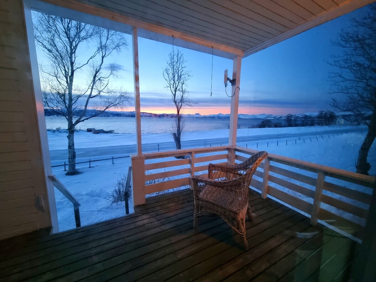 Ζήστε τον ήλιο του μεσονυκτίου το καλοκαίρι και το βόρειο φως το χειμώνα από το ξυλόσπιτό μας. Βρίσκεται δίπλα στη θάλασσα, με όλες τις ανέσεις και χώρο στάθμευσης. 60 τ.μ., σε δύο ορόφους. Δύο υπνοδωμάτια με πέντε θέσεις ύπνου συνολικά. Μπορούμε επίσης να παρέχουμε ένα επιπλέον κρεβάτι για ένα μωρό. Ένα ιδανικό σημείο για να ανακαλύψετε το Τρόμσο και τα περίχωρά του λόγω της κοντινής τοποθεσίας στην πόλη και ταυτόχρονα της κοντινής φύσης. Το καλοκαίρι μπορούμε να νοικιάσουμε ποδήλατα και ένα σκάφος με οδηγό.
