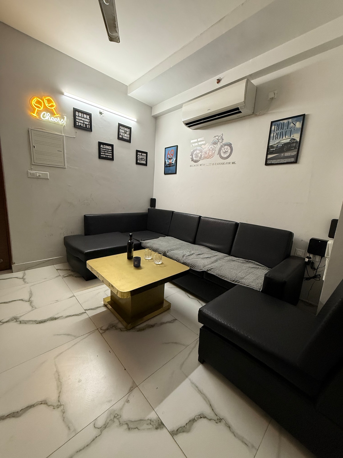 Καλώς ήρθατε στο HangOut AirBnB. Αυτό θα είναι το πλήρως κλιματιζόμενο διαμέρισμά σας με 3 υπνοδωμάτια στην κομψή γειτονιά East Punjabi Bagh - Main Road. Σας παρέχουμε ηχεία εσωτερικού χώρου, βασικά μαχαιροπίρουνα στην κουζίνα, Smart TV, 24ωρη ασφάλεια και μερικούς φροντιστές πλήρους απασχόλησης για να σας βοηθήσουν να έχετε ασφαλή και εκπληκτικά πάρτι και συγκεντρώσεις. Η καταχώρηση δείχνει τις εικόνες της βεράντας αυτού του ακινήτου. Θα είναι διαθέσιμη με επιπλέον χρέωση 15.000 ρουπιών. Η βεράντα δεν θα παρέχεται σε αυτήν την τιμή.