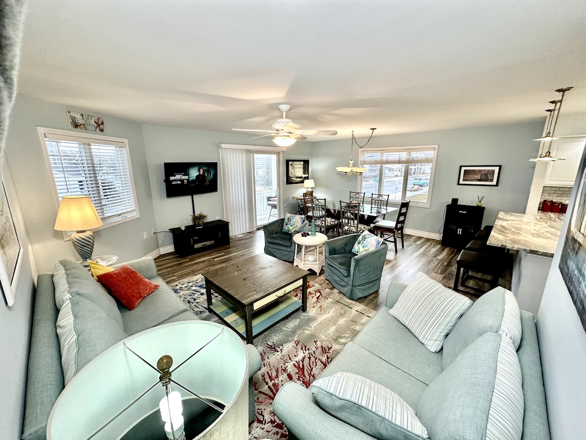 Αυτό το πλήρως ανακαινισμένο διαμέρισμα με 3 υπνοδωμάτια και 2 πλήρη μπάνια απέχει μόλις λίγα βήματα από την καλύτερη παραλία στο North Wildwood. Ελάτε και απολαύστε τον ήχο του ωκεανού καθώς απολαμβάνετε το πρωινό σας φλιτζάνι καφέ ή το βραδινό ποτήρι κρασί. Τα παιδιά θα λατρέψουν το διπλό σετ κουκέτες, τις τηλεοράσεις σε όλα τα υπνοδωμάτια και οι γονείς θα λατρέψουν την τηλεόραση 85" στο οικογενειακό δωμάτιο για να απολαύσουν με όλη την οικογένεια. Κάθε προσοχή στην εξαιρετική λεπτομέρεια έχει σκεφτεί να κάνει αυτό το σπίτι να νιώθετε σαν το δικό σας.
