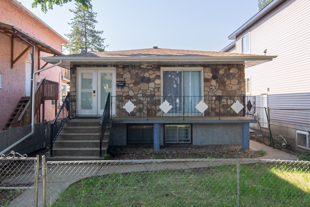Βρίσκεται στο υπόγειο ενός παλαιότερου κτιρίου τριών ορόφων. Αυτό το ανακαινισμένο διαμέρισμα βρίσκεται ακριβώς απέναντι από το Στάδιο της Κοινοπολιτείας και δίπλα σε έναν κεντρικό σιδηροδρομικό σταθμό LRT για γρήγορη και εύκολη πρόσβαση στο κέντρο της πόλης και σε άλλες κοντινές τοποθεσίες. ΤΡΈΝΟ ★ 4 ΛΕΠΤΏΝ - Κέντρο του Έντμοντον ★ 9 ΛΕΠΤΆ ΜΕ ΤΟ ΤΡΈΝΟ - Edmonton Expo Center ΤΡΈΝΟ ★ 13 ΛΕΠΤΏΝ - Πανεπιστήμιο της Αλμπέρτα ★ 8 ΛΕΠΤΆ ΜΕ ΤΑ ΠΌΔΙΑ - Σούπερ μάρκετ (Save-on-Foods)