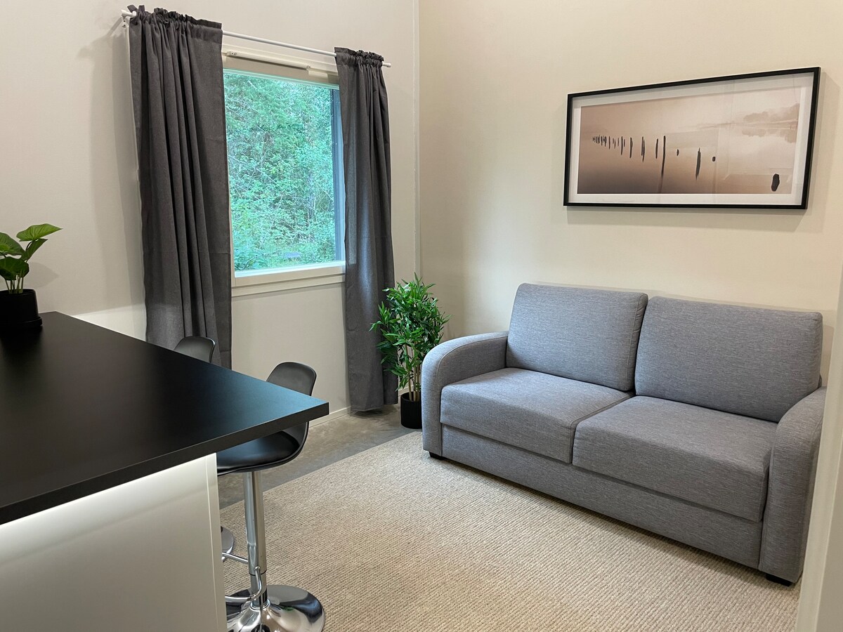 Καλώς ήρθατε σε αυτό το φωτεινό διαμέρισμα που μοιάζει με σάουνα, το οποίο συνδυάζει την άνεση, την ηρεμία και την εγγύτητα στη φύση. Η τέλεια επιλογή τόσο για τους παραθεριστές όσο και για τους ταξιδιώτες για επαγγελματικούς λόγους – εδώ μπορείτε να χαλαρώσετε στον ατμό στο τέλος της ημέρας ή να απολαύσετε την ηρεμία της φύσης ακριβώς στο κατώφλι. Πλήρως εξοπλισμένη κουζίνα, χώρος εργασίας και άνετος καναπές-κρεβάτι προσφέρουν καθημερινή άνεση. Το ανοιχτό υπνοδωμάτιο διαθέτει ένα διπλό κρεβάτι και τηλεόραση, και η ημέρα ολοκληρώνεται με τη δική σας σάουνα.