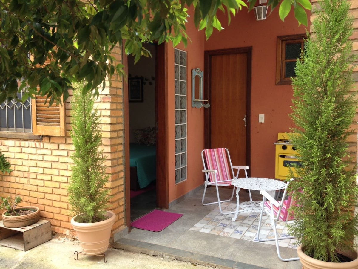 Όμορφο και γοητευτικό σαλέ που βρίσκεται στην πίσω αυλή του σπιτιού μου (βρίσκεται σε έναν όμορφο δρόμο, σε μια περιοχή με όλες τις ανέσεις σε κοντινή απόσταση). Ο χώρος είναι απλός αλλά ζεστός, χαρούμενος και φιλόξενος. Είναι ένα οικογενειακό περιβάλλον και θέλω να υποδεχτώ μόνο άτομα εκτός της BH, που έρχονται για διασκέδαση ή για δουλειά και θέλουν να μείνουν σε ένα οικογενειακό σπίτι. Το σαλέ είναι εξοπλισμένο με βασικά είδη και επιτρέπει την ανεξαρτησία, αλλά βρίσκεται στην πίσω αυλή του σπιτιού μου. Θα είμαι πάντα διαθέσιμος όταν με χρειαστείτε!