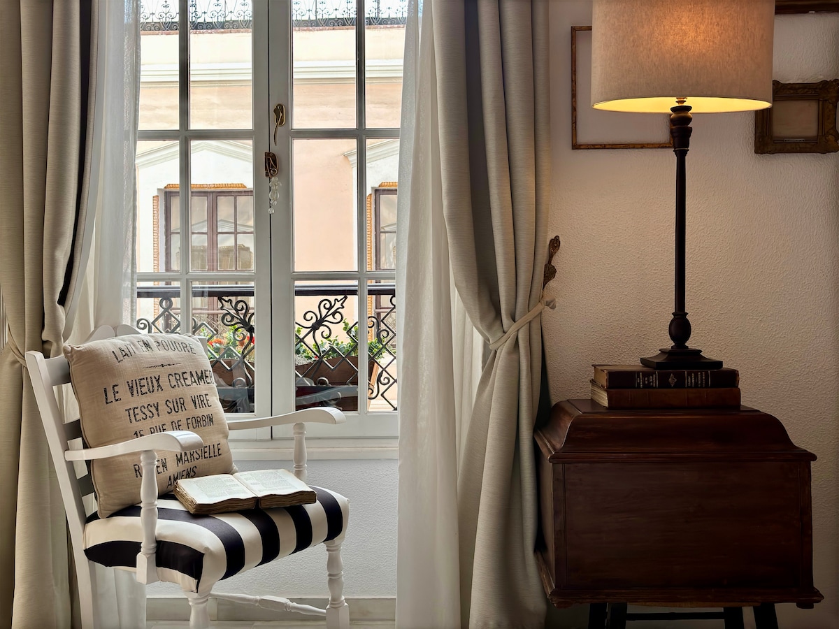 Apartamento para adultos y niños mayores de 10 años. No fumadores. Aparcamiento incluido en el precio de la reserva. El Loft se ubica en una bodega jerezana rehabilitada del siglo XVIII. Es un espacio diáfano bellamente decorado y completamente equipado. Está situado en primera planta con ascesor y cuenta con una terraza amueblada de 20 m2 bajo los soportales del patio en planta baja. Es un lugar muy tranquilo para desconectar y disfrutar de la paz y el silencio en un edificio histórico.