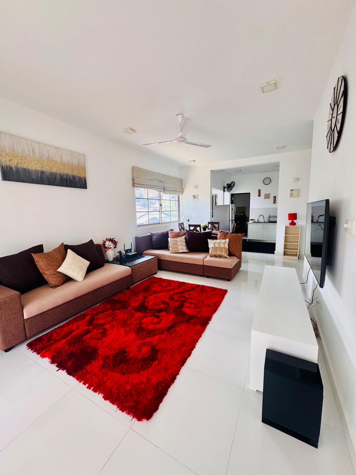 Καλώς ήρθατε στην ιδιωτική σουίτα σας με διπλό κρεβάτι queen size στη Nugegoda, μόλις 100 μέτρα από τον κεντρικό δρόμο και 3 λεπτά με το αυτοκίνητο από την πόλη. Απολαύστε ένα μεγάλο διπλό κρεβάτι με 100% φυσικό στρώμα από λάτεξ και ύφασμα από τη London Sleep Company, κλιματισμό στην κρεβατοκάμαρα και ειδικό χώρο εργασίας με WiFi 4G. Χαλαρώστε με μια έξυπνη τηλεόραση Samsung 42" με soundbar Harman. Η σουίτα περιλαμβάνει ιδιωτικό μπάνιο, πλήρως εξοπλισμένη κουζίνα και τραπεζαρία – ιδανική για παρατεταμένες διαμονές, εργασία εξ αποστάσεως ή απλώς για να χαλαρώσετε με άνεση.