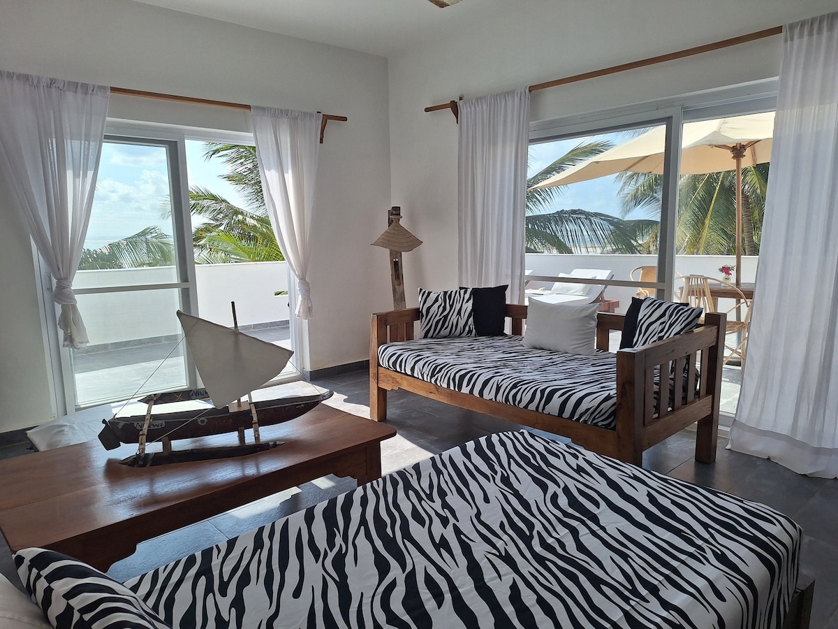 Just Heaven – Ocean Prestige is our true gem — a ground-floor apartment set right on the beach, where the ocean begins just a few steps from your door. Imagine waking up, opening your eyes, and being greeted by the endless blue of the sea. Step outside to feel the softest white sand in the world beneath your feet and breathe in the scent of the ocean breeze. Within minutes, you can board a boat and, just 20 minutes later, admire dolphins and the magical Mnemba coral reef.