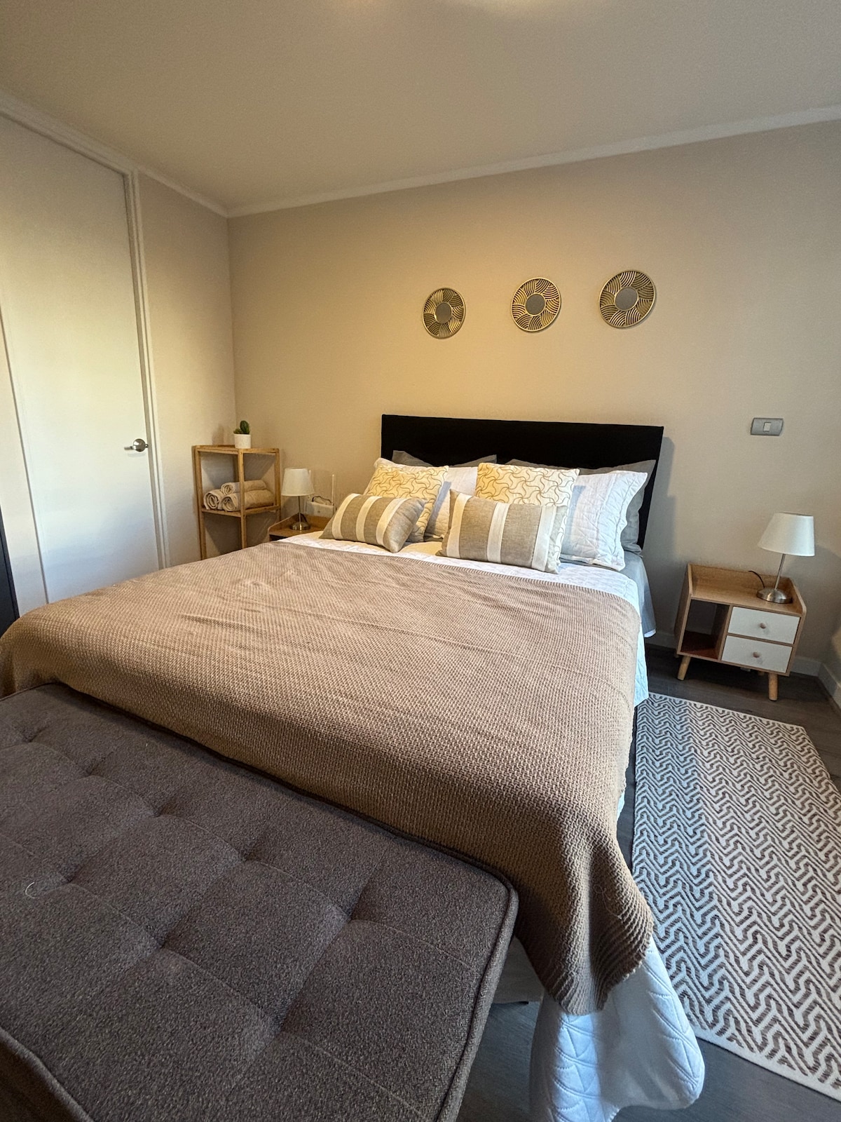 📍 Ubicación estratégica: ¡será muy fácil planear tu visita!. Características principales: 🏠 Full equipado para 1 a 4 huéspedes 🚇 A pasos del Metro Irarrázaval 🔑 Auto check-in 24 horas 🌬️ Aire acondicionado y calefacción 🛏️ Cama queen con colchón premium 🛋️ Sofá cama de 3 cuerpos 144x199cm 🧴 Toallas y ropa de cama incluidas 💪 Gimnasio de 3 pisos 🏊 Piscina disponible en temporada de verano 📺 Smart TV en living y dormitorio 🚗 Estacionamiento de pago: CLP 8.000 (~USD 9,3) por noche