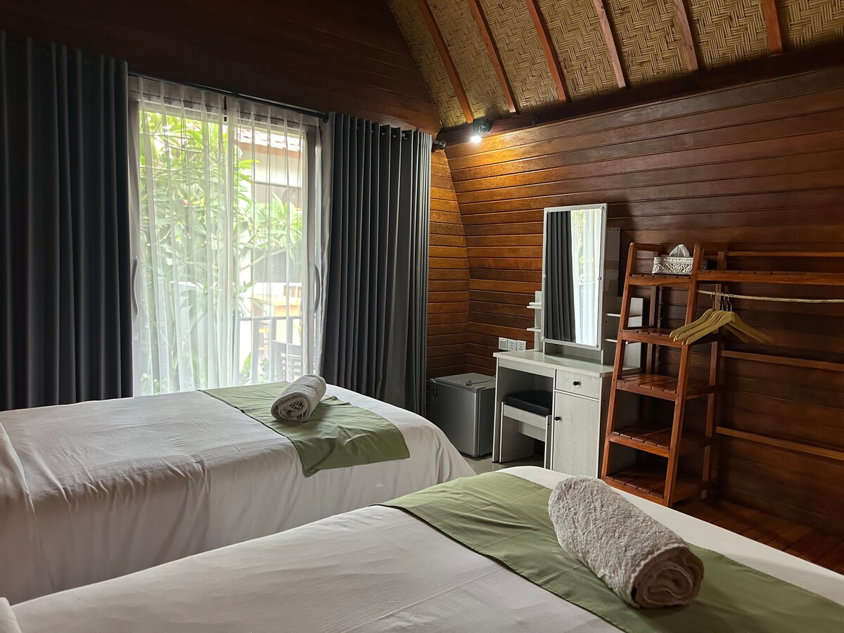 Ζούγκλα συναντά αριστοκρατικό σε Talā Penida. Τα όμορφα διακοσμημένα ξύλινα μπανγκαλόου μας είναι εξοπλισμένα με κλιματισμό και διαθέτουν άνετο καθιστικό με θέα στον κήπο. Κάντε ντους κάτω από τα αστέρια στα ημιυπαίθρια μπάνια. Απολαύστε μια καρύδα στις ρηχές πισίνες μας. Δοκιμάστε αυτή τη νέα στάση γιόγκα στο Yoga Shala ή βρείτε την εσωτερική ηρεμία σας στο ξύλινο κατάστρωμα διαμεσολάβησης. Το πρωινό ΔΕΝ περιλαμβάνεται (à la carte). Επιλέξτε από ένα μείγμα Ινδονησίας και Δυτικής Επιλογές. - ΕΝΉΛΙΚΕΣ ΜΌΝΟ -