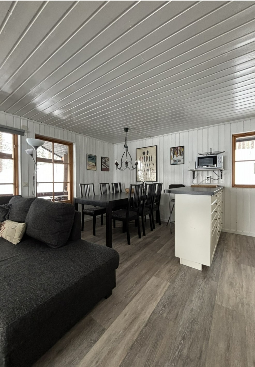 Comfortable family accommodation with 8 beds, a cosy fireplace and sauna. Parking for 2 cars. Proximity to nature, the alpine ski resort, cross-country/hikning/biking trails. Newly renovated kitchen+bathroom (2021). Dishwasher, microwave, Wifi, AppleTV. Plenty of summer/winter activities: downhill biking, hiking, swimming, fishing, skiing, ice fishing, skating, ride a snowmobile or tracked vehicle. The village (3 km) offers good restaurants, food store and sports shop, open all year round.