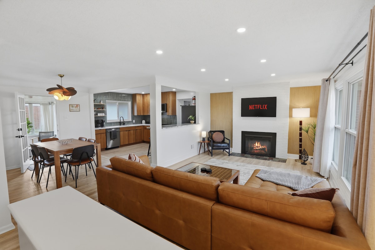 Discover tranquility in our 4-bed mid-century haven, meticulously renovated over 9 months in 2023! Unwind in the rare over sized living room with a 75' TV and fireplace, create cherished memories with board games from a stocked shelf. Relish outdoor dining under the pergola with a BBQ grill or cook up delights in the brand-new kitchen. Indulge in the golden rainfall shower for an luxurious cleanse after desert! Your perfect retreat awaits in this safe, quiet suburb on the Royal Oak border!