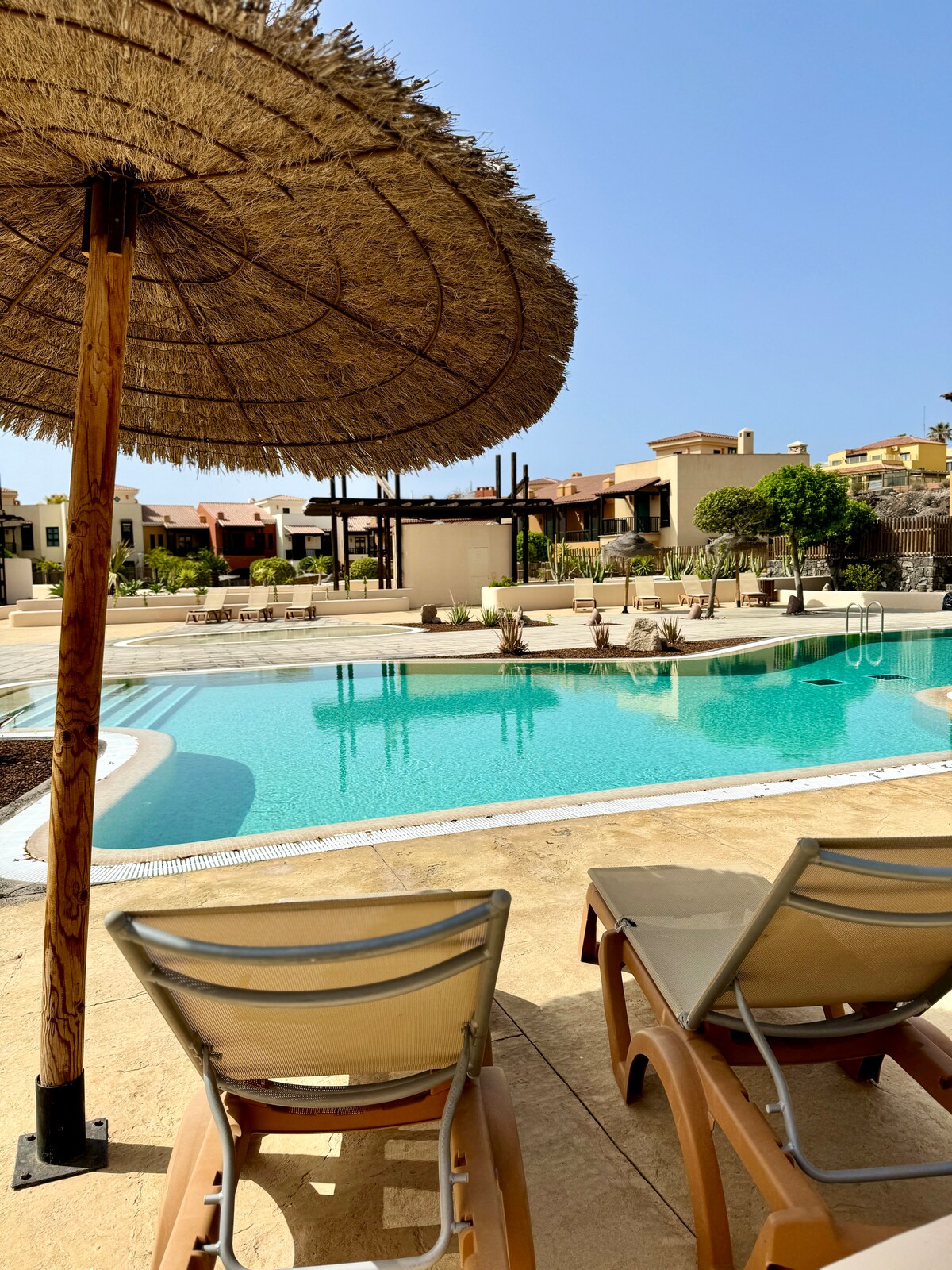 Ανακαλύψτε το κομψό, μοντέρνο διαμέρισμά μας (71 τ.μ. συμπεριλαμβανομένης της βεράντας) στο Golf del Sur της Τενερίφης. Ιδανικό για ζευγάρια που αναζητούν άνεση και ποιότητα. Απολαύστε μια ευρύχωρη βεράντα με θέα στο όρος Teide και την ανατολή του ηλίου, ψησταριά Weber και ξαπλώστρες Lafuma για χαλάρωση. Διαθέτει κλιματισμό, κουζίνα υψηλής ποιότητας, έξυπνη τηλεόραση (διεθνή κανάλια) και Wi-Fi με οπτικές ίνες. Πρόσβαση στις θερμαινόμενες πισίνες του αποκλειστικού μας παραθεριστικού συγκροτήματος. Check-in χωρίς παρουσία οικοδεσπότη και εξατομικευμένη εξυπηρέτηση από την ομάδα μας με πάνω από 10 χρόνια εμπειρίας.