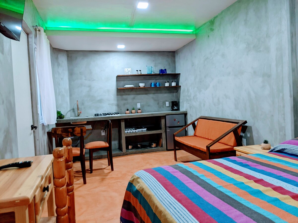 Spectacular and modern Paradise apartment, includes breakfast with a Oaxacan touch. 1 bedroom, bed (King), 65” TV, 1 sofa bed and 75” TV, minibar that has a consumption option (extra cost). A heated jacuzzi with hydromassage, high-speed Starlink Internet (200 Mbps) and fiber optics Netflix, Disney+, Amazon Prime. Digital lock with custom key, free laundry option (washer and dryer). Electric gate, electric car charger (additional cost)