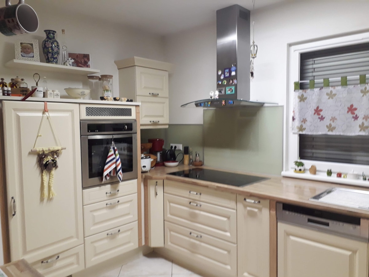 Το διαμέρισμά μας με 2 υπνοδωμάτια, 1 μπάνιο, κουζίνα, ευρύχωρο σαλόνι με καναπέ και τραπεζαρία, κλιματισμό και ευρύχωρη αυλή βρίσκεται μόλις 100 μέτρα από τη λίμνη Bled (περιοχή κολύματος). Βρίσκεται σε πολύ ήσυχη περιοχή. Έχει δική του είσοδο και βρίσκεται στο σπίτι μας (οπότε είμαστε πάντα κοντά για να βοηθήσουμε). Είμαστε μια οικογένεια 5 ατόμων και θα χαρούμε να σας φιλοξενήσουμε. Βιωσιμότητα: Παραγάγουμε περισσότερη ενέργεια από ό,τι χρησιμοποιούμε. Δεν συμπεριλαμβάνεται ο τουριστικός φόρος (3,13 για ενήλικες ανά ημέρα, 1,56 για παιδιά άνω των 7 ετών).
