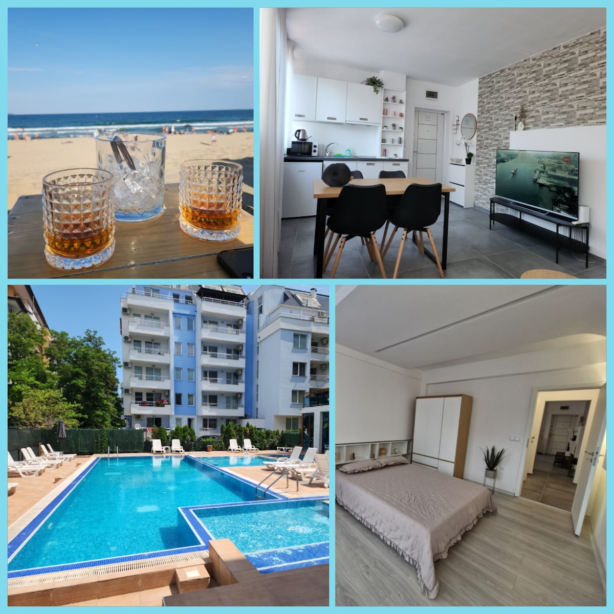 Καλώς ήρθατε σε ένα μοναδικό διαμέρισμα διακοπών με εκπληκτική πανοραμική θέα στη θάλασσα και το Nessebar ,με μια τεράστια βεράντα όπου είναι ευχάριστο να συναντήσετε ανατολές και ηλιοβασιλέματα Είναι άνετο, ατμοσφαιρικό και εορταστικό Το διαμέρισμα απέχει μόλις 180 μέτρα από την παραλία Στην περιοχή υπάρχει πισίνα με ξαπλώστρες, εστιατόριο, χώροι αναψυχής Το διαμέρισμα διαθέτει επιπλωμένο σαλόνι με κουζίνα,όλες τις απαραίτητες συσκευές , ντους και υπνοδωμάτιο με πανοραμικά παράθυρα Θα έχετε τη δυνατότητα να χαλαρώσετε και να απολαύσετε τη διαμονή σας
