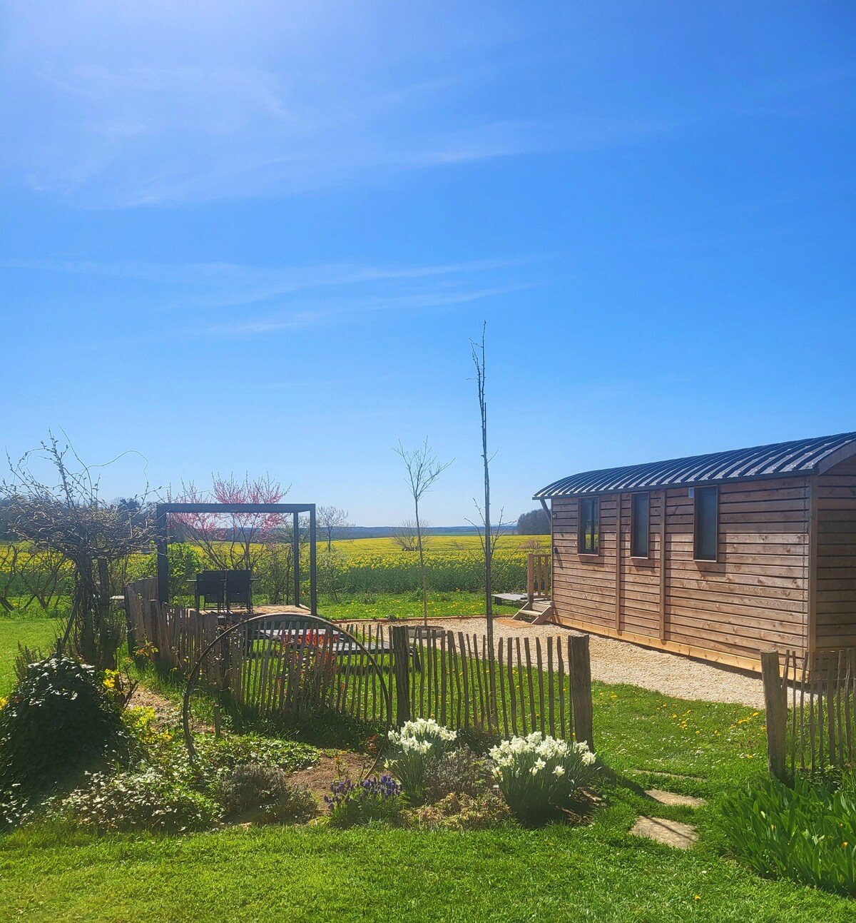 Un havre de paix niché au cœur de la campagne. Ce charmant logement peut accueillir jusqu'à quatre personnes, offrant ainsi l'intimité parfaite pour les couples ou les petites familles. Avec ses deux chambres séparées. Le Lodge offre une vue imprenable sur les vastes champs qui s'étendent à perte de vue. Idéalement situé entre Dijon 45 min et Langres 30 min. Proche du Lac de Villegusien 20min pour une détente au bord de l'eau