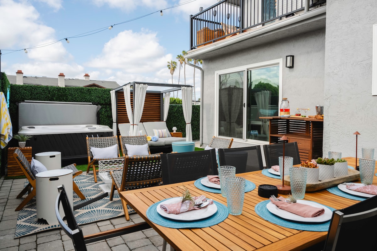 Detached Coastal Craftsman w/ outdoor living space, private entrance, two off street parking spots, private hot tub. Your own beach home! Walk to Beach, Restaurants, Breweries, great Coffee, Grocery/Health food store, Boutique Shopping, Farmer's Market, Nightlife! Minutes to Downtown, OldTown, Mission Bay, San DiegoZoo, SeaWorld. GasBBQ, Laundry,Bikes, BeachGear,Pack&play, highchair. This is the front house on a large lot (7000 SF) with two fully private cottages. 3 blks to beach and Newport Ave