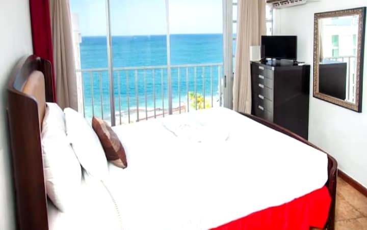 POOL IS CLOSED FOR RENOVATIONS ON JAN 2023,WILL NOT OPEN UNTIL 2025 ask. RATES HAVE BEEN LOWERED TO COMPENSATE. WE ARE RIGHT ON A GORGEOUS BEACH! Luxury Jr one bedroom Apt. On the Beach with Ocean view.Modern, Comfortable, Clean & Chic Apt. Washer & Dryer inside the Apt.Equipped kitchenette 1 King Beds plus 2 twin beds Free private parking spot in the Building Great for all travelers: Families, couples, solo. all welcomed. Direct beach access walk to Restaurants, grocery stores, bars +.