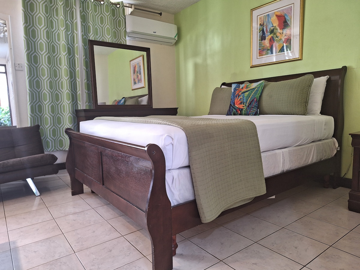 Αποδράστε στη δική σας όαση με δωρεάν πρόσβαση στην παραλία, σε μια πρόσφατα ανακαινισμένη κεντρική τοποθεσία μέσα στην πόλη Ocho Rios, Τζαμάικα, μερική θέα στην παραλία από το μπαλκόνι, λίγα λεπτά με τα πόδια από τη γραφική παραλία Ocho Rios Bay, με τα πόδια από εστιατόρια, μεγάλες τράπεζες και εμπορικά κέντρα, 5 λεπτά με το αυτοκίνητο από διάσημα αξιοθέατα, όπως οι καταρράκτες του ποταμού Dunns, ο όρμος Dolphin, ο όρμος Chukas και το βουνό Mystic. Το παραθαλάσσιο διαμέρισμά σας προσφέρει IPTV, κλιματισμό, ζεστό νερό, πρόσβαση στην πισίνα και δωρεάν πάρκινγκ.