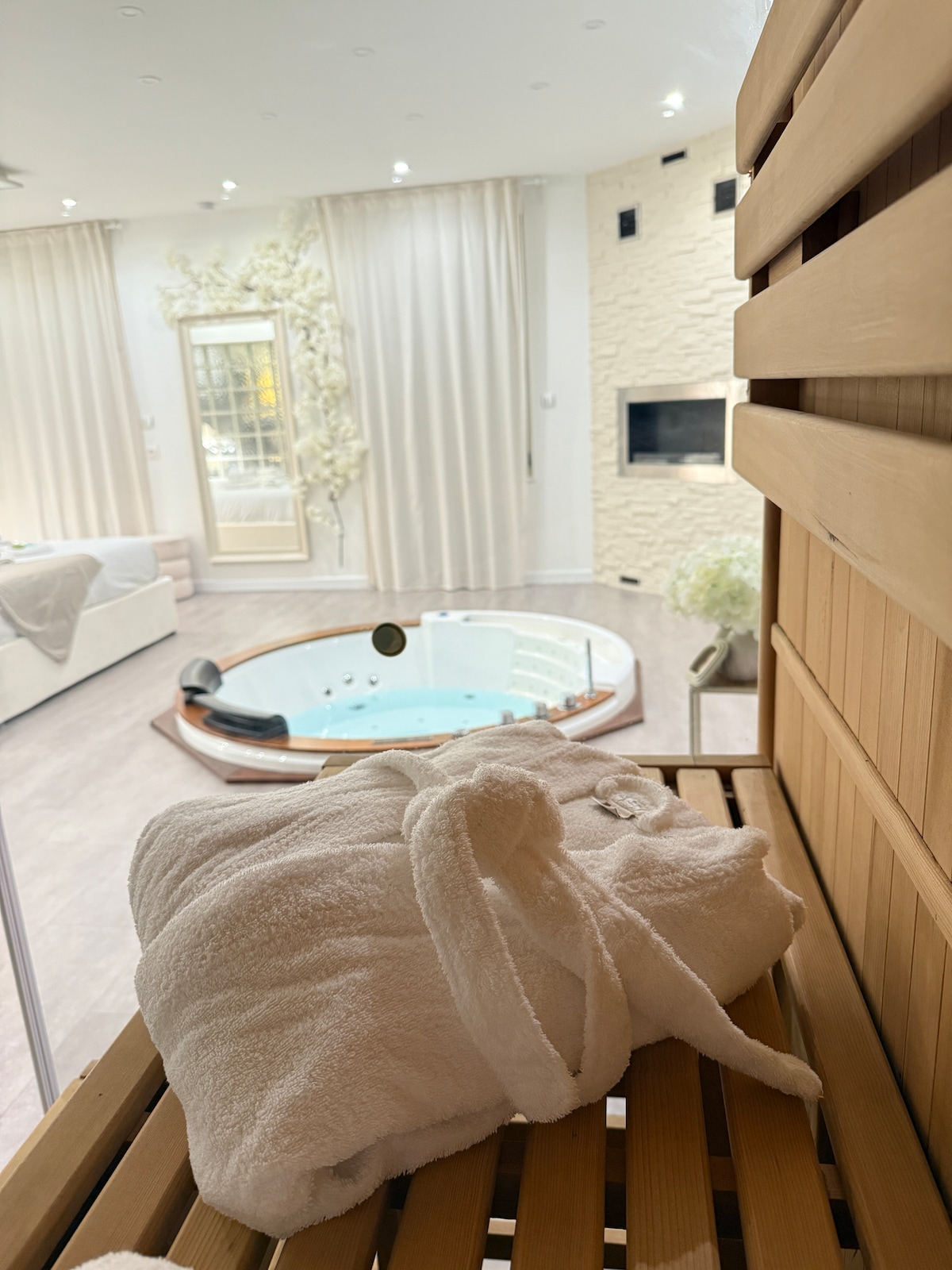 Ενοικιαζόμενο για διακοπές 5 ⭐️ Ελάτε να γεμίσετε τις μπαταρίες σας σε αυτήν τη φυσαλίδα χαλάρωσης. Αυτό το προσεκτικά διακοσμημένο διαμέρισμα 85 τ.μ. που βρίσκεται σε μια μικρή κατοικία στο ισόγειο είναι εξοπλισμένο με τζακούζι που μπορεί να φιλοξενήσει 3 άτομα, σάουνα και ιδιωτική βεράντα. Απολαύστε τη διαμονή σας σε μια ήσυχη και άνετη τοποθεσία. Πρωινό 25 € Ρομαντική διακόσμηση/γενέθλια 25 € Δίσκος ρακλέτας 40 € για δύο άτομα Δίσκος με αλλαντικά και τυριά 40 €