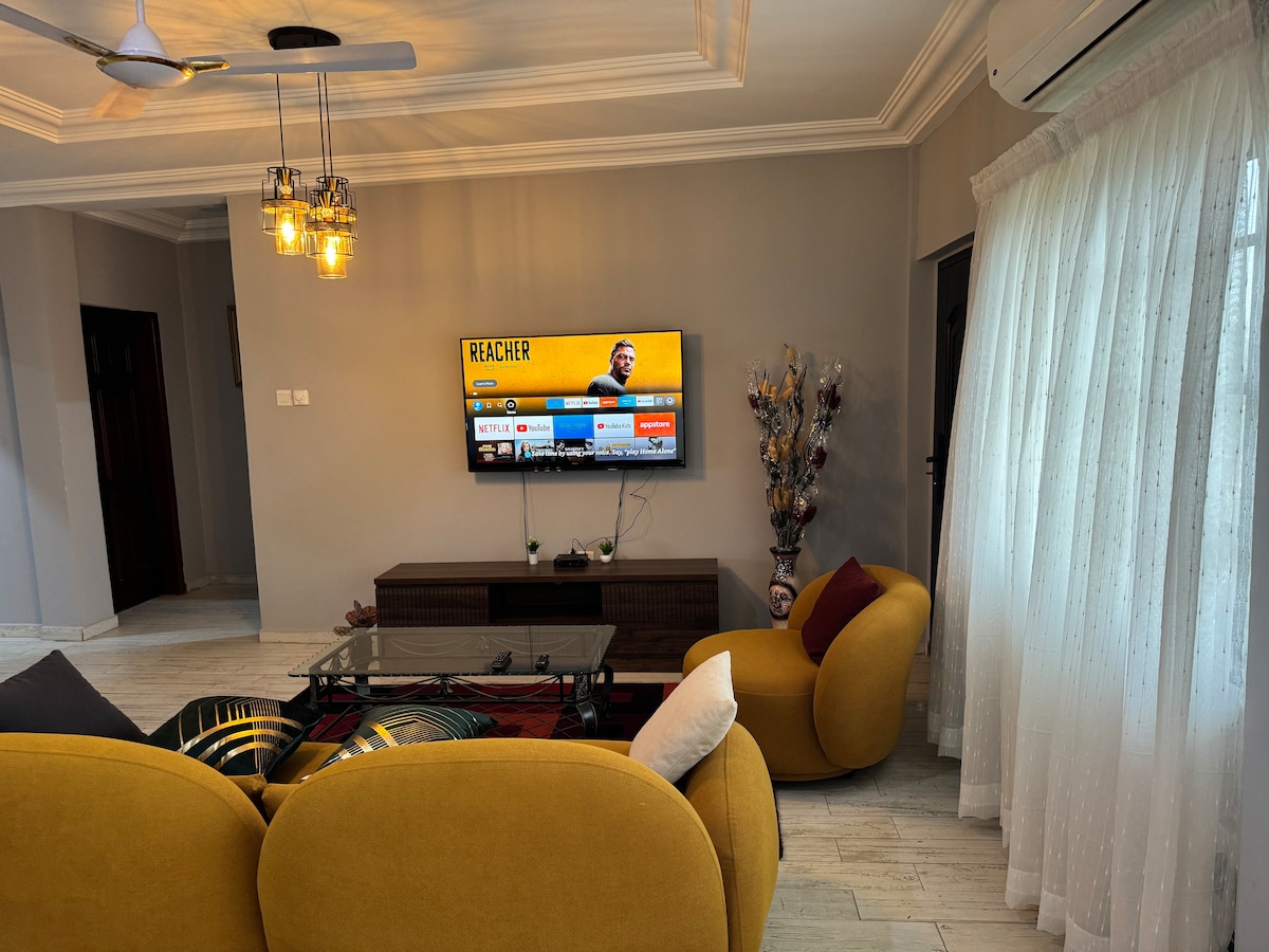 Απολαύστε τα απλά πράγματα σε αυτόν τον γαλήνιο και κεντρικό χώρο διαμονής στον δρόμο Spintex. Απέχει περίπου 15 λεπτά με το αυτοκίνητο από το αεροδρόμιο και το Τέμα. Βρίσκεται σε κεντρική τοποθεσία και κοντά σε εμπορικά κέντρα και κέντρα νυχτερινής διασκέδασης. Υπάρχει εφεδρική γεννήτρια σε περίπτωση διακοπής ρεύματος. Υπάρχει επίσης δωρεάν Netflix. Οι επισκέπτες έχουν επίσης πρόσβαση σε ένα τραπέζι μπιλιάρδου για την ψυχαγωγία τους. Υπάρχει καθαριστής και το μέρος έχει 24/7 ασφάλεια.