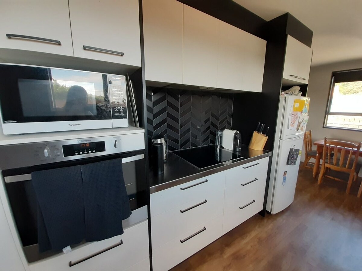 Ο χώρος μας είναι κοντά σε αθλητικό χώρο, παραλία, καφετέρια και περιπάτους στη φύση. Λόγοι που θα σας αρέσει ο χώρος μας: οι σύγχρονες εγκαταστάσεις και η ευκαιρία να ζήσετε την αληθινή φιλοξενία των Νέων Ζηλανδών. Ο χώρος μας είναι ιδανικός για ζευγάρια και ταξιδιώτες για επαγγελματικούς σκοπούς. Έχετε τη δική σας ιδιωτική είσοδο και χώρο στάθμευσης. Έχουμε χτίσει αυτό το μοντέρνο σπίτι για να χωρίζεται σε δύο διαμερίσματα που χωρίζονται από πόρτες ιδιωτικότητας. Το διαμέρισμα διαθέτει πολλά χαρακτηριστικά που θα σας ευχαριστήσουν. Το χειμώνα η φωτιά από κούτσουρα κρατάει τον χώρο ζεστό και άνετο.