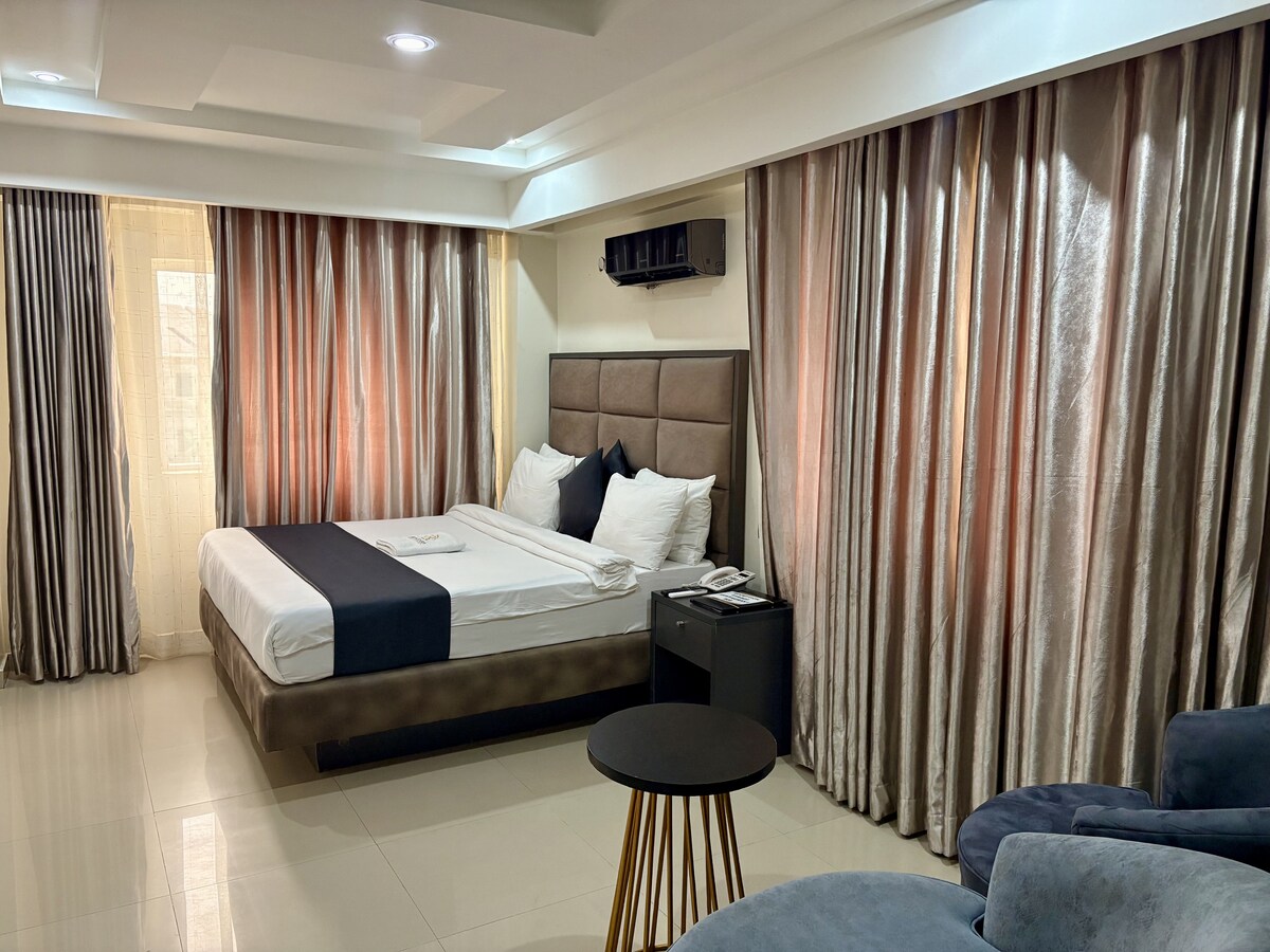 Experience luxury at this stylish Lagos retreat! Featuring a plush king-size bed, chic parlor, smart TV, high-speed Wi-Fi, and air conditioning, this suite blends comfort and sophistication. Nestled in a vibrant, upscale neighborhood near top dining and nightlife, it’s perfect for business or leisure. Enjoy premium amenities, elegant design, and a true 5-star experience in the heart of Lagos.