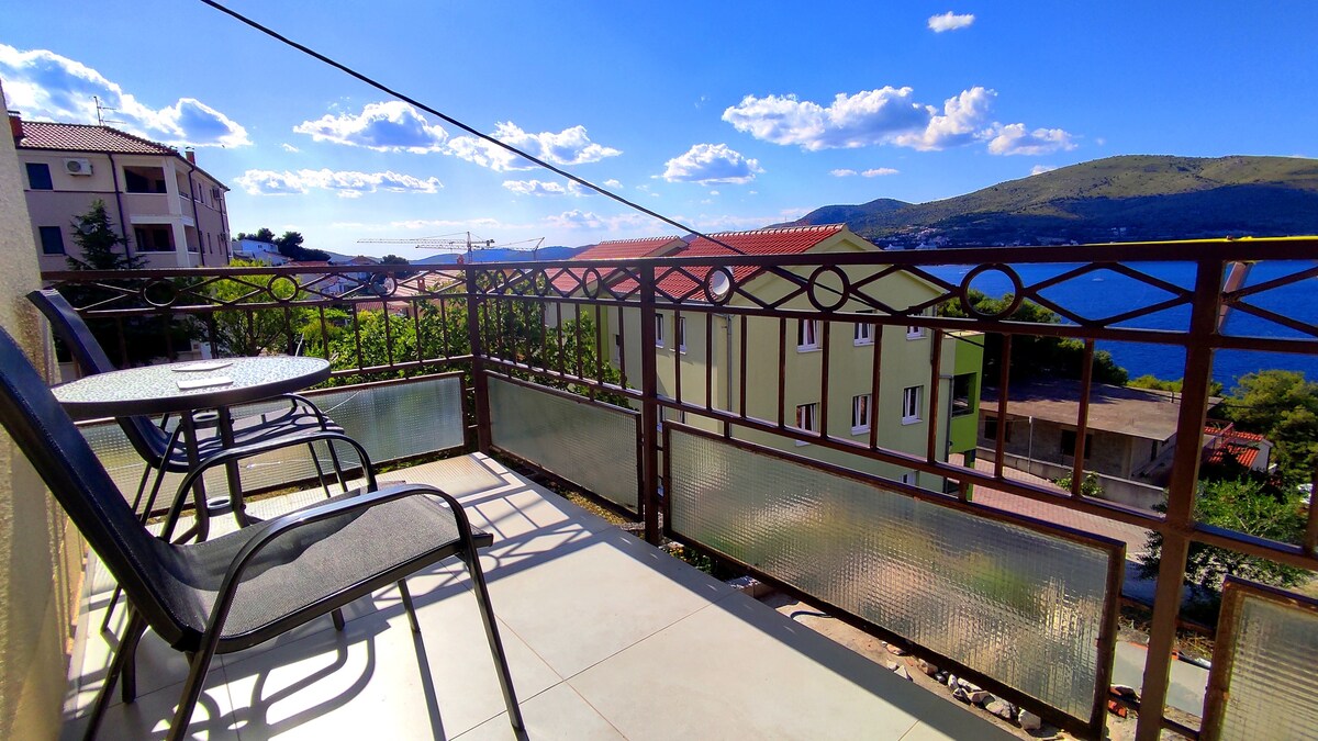 The apartment was newly built, 2021.The apartment is in a block,connected to a family house.. It has two floors with a separate entrance. Guests can use a part of the garden in front of the apartment with a table and chairs. Atractive beach with plenty things to do is 2 minutes . The apartment you can enjoy and relax, and if you want any other activity ,its near by .Trogir is a 15 minute walk and there is a boat every 10 minutes .Enjoy the sun and the Adriatic sea in an attractive location ''.